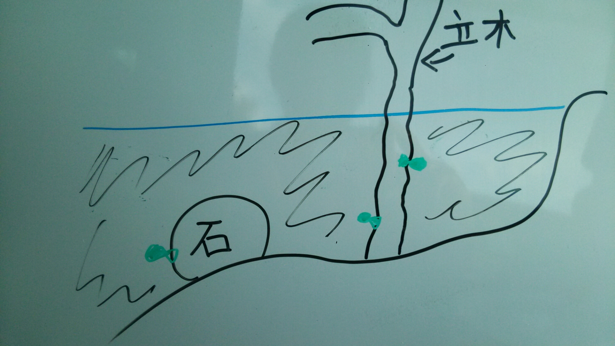 こんな感じで濁りが入ると障害物に寄り添うようにタイトに着く傾向があります。