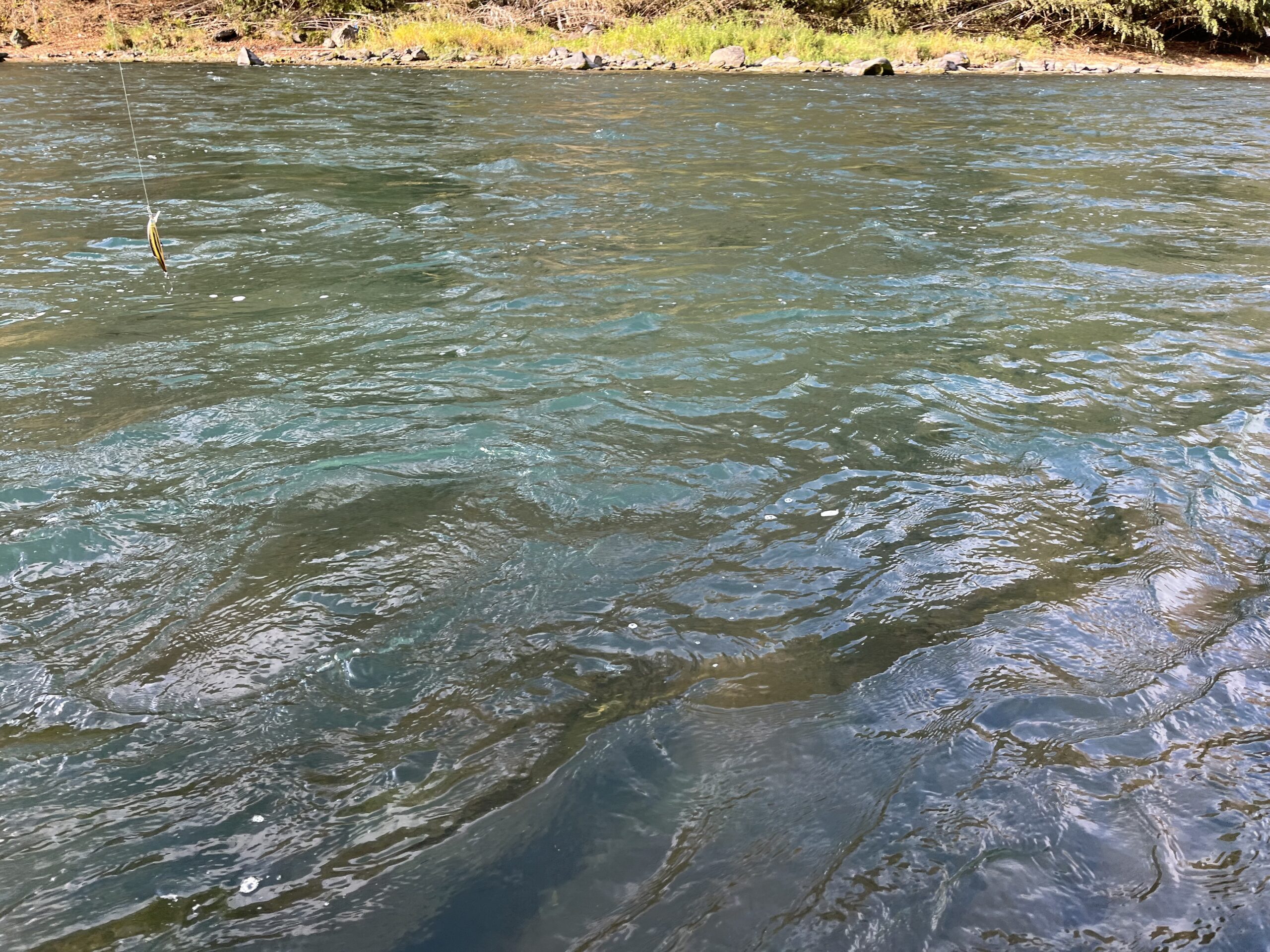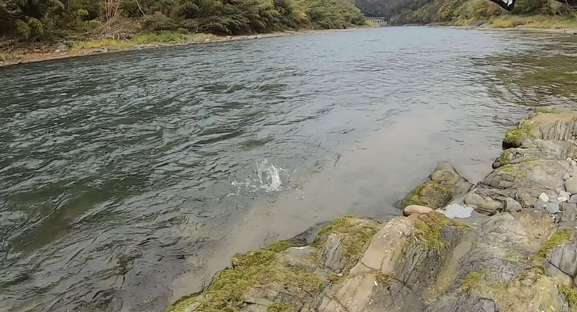 今回ヒットした釣り方ですが、この時は立ち位置より下流にブレイクがありちょうどその辺りを
