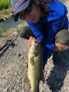 夜中から琵琶湖へ向かい、灼熱の中のノーバイトから爆風で撤退し大江川で釣りをする。