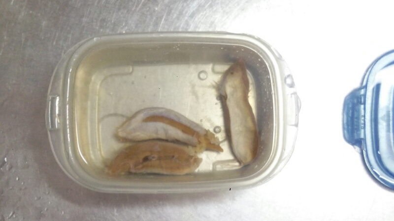 イカのわたを破かないよう取り出したっぷり塩を振り一晩放置します。