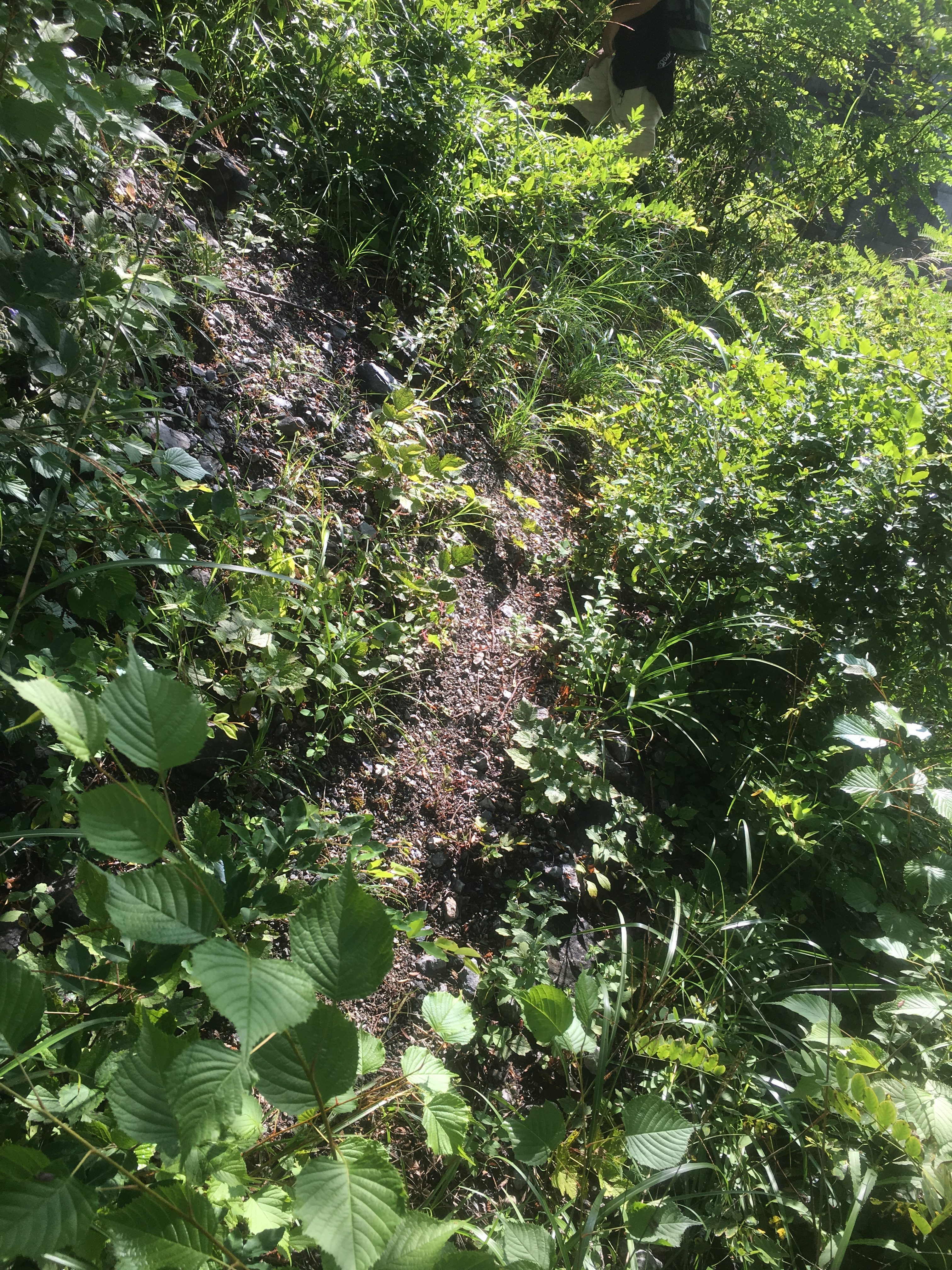 登山道を使ったり、藪を漕いだりし、ひたすら上を目指します。