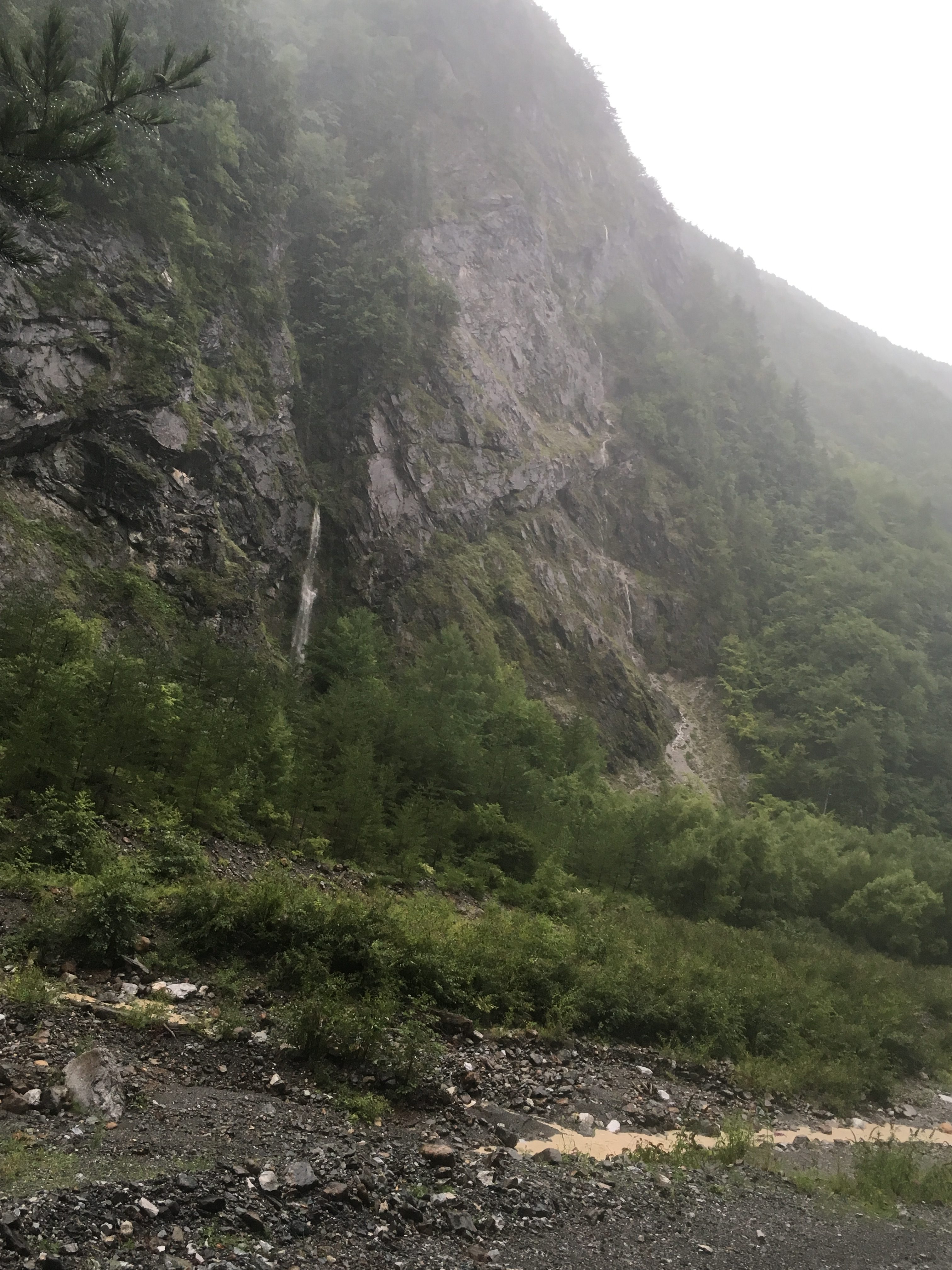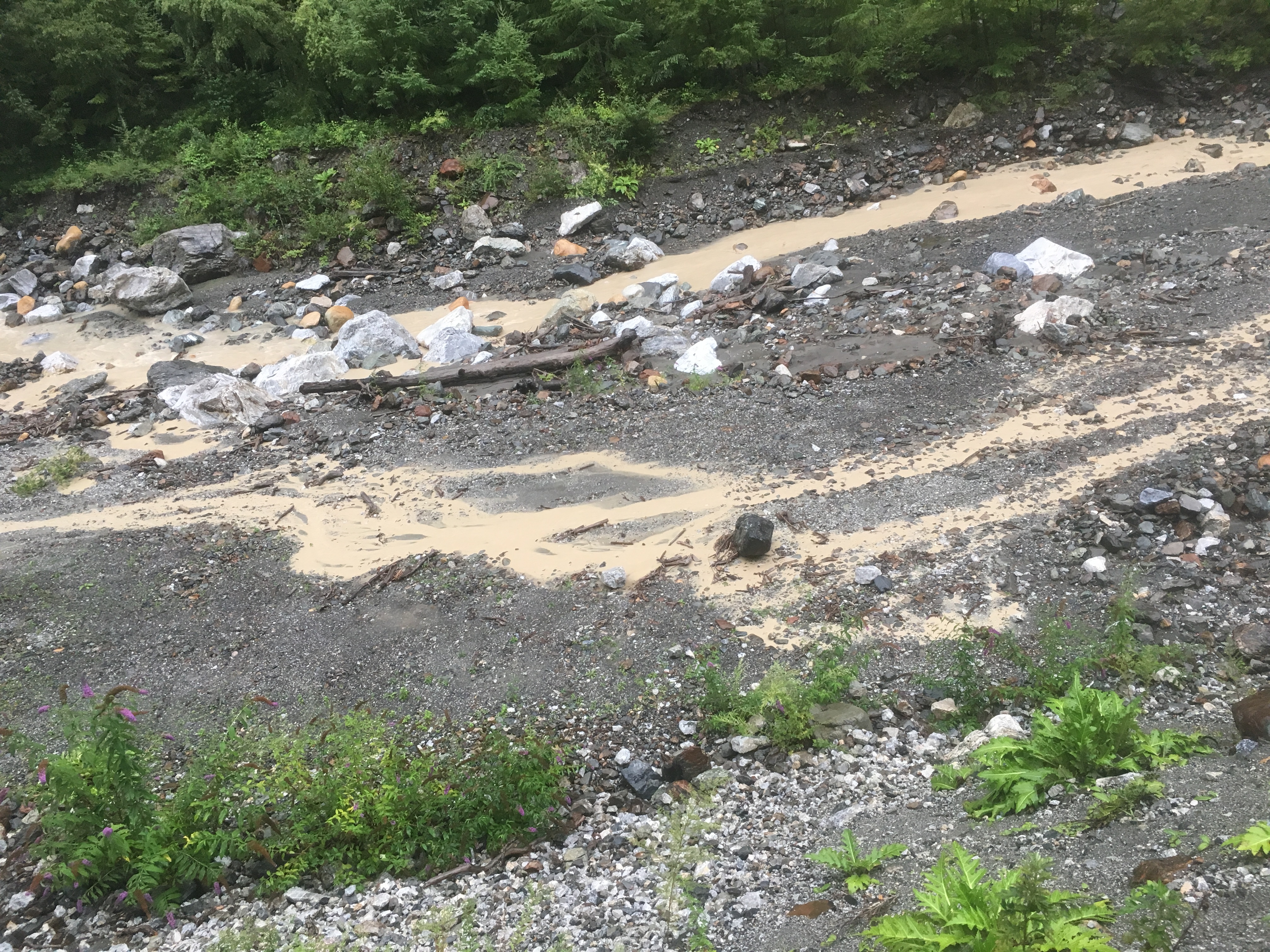 降り始めて2時間くらいなのに、雨の影響で朝登った時は無かった川がいくつもありました。