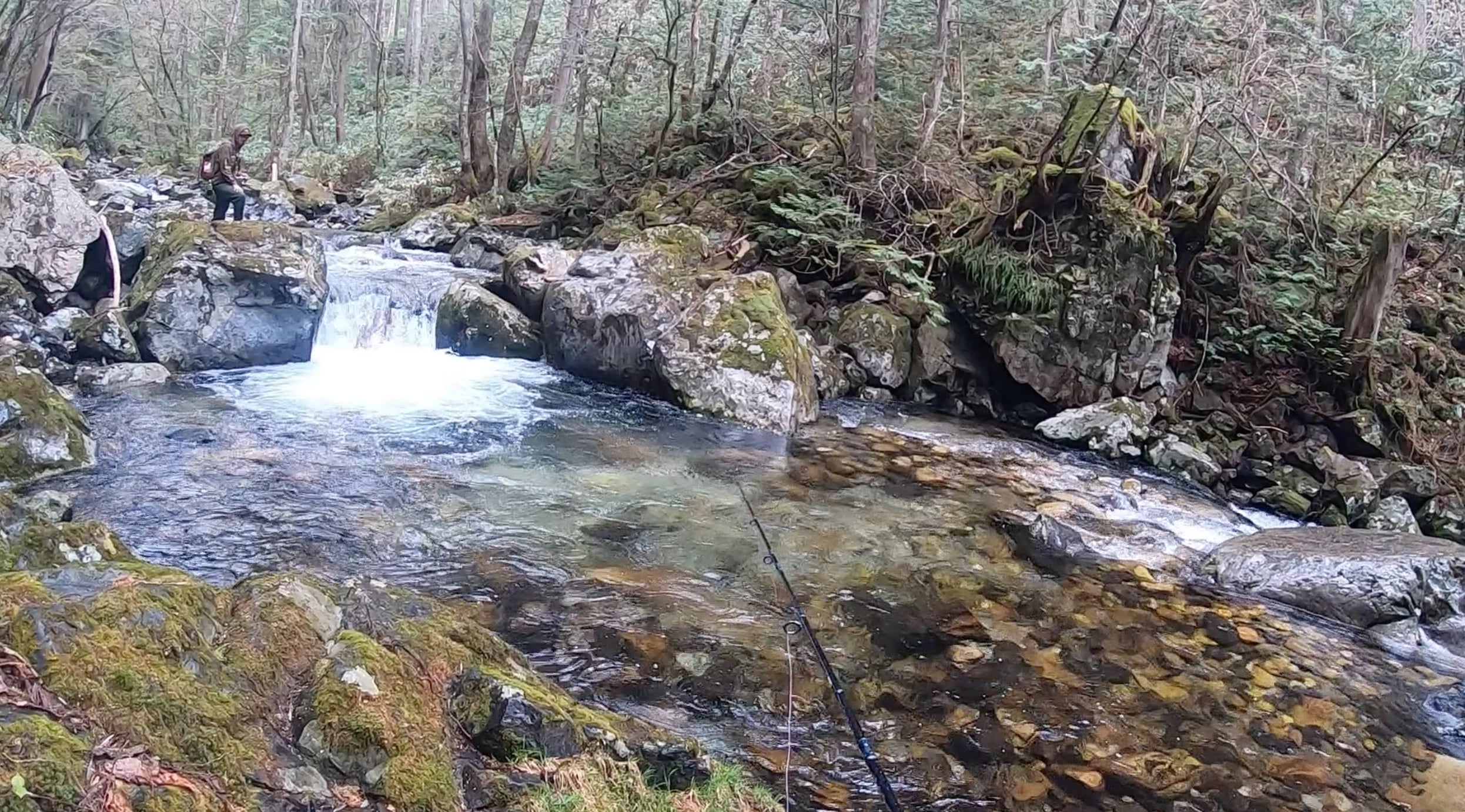 渓流エリアは常に水が流れてて予想以上にルアーを見失います。