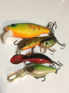 転がっていたルアーを上から色の強い順に並べて見ました。