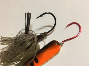 スピナーベイトやラバージグもシングルフックですがこちらは交換できないので大事に使いましょう(笑)