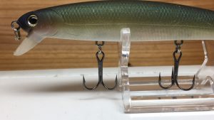 ルアーのお腹(ベリー)の色にフックを合わせるとそれだけで目立たなくなるかもしれませんね。