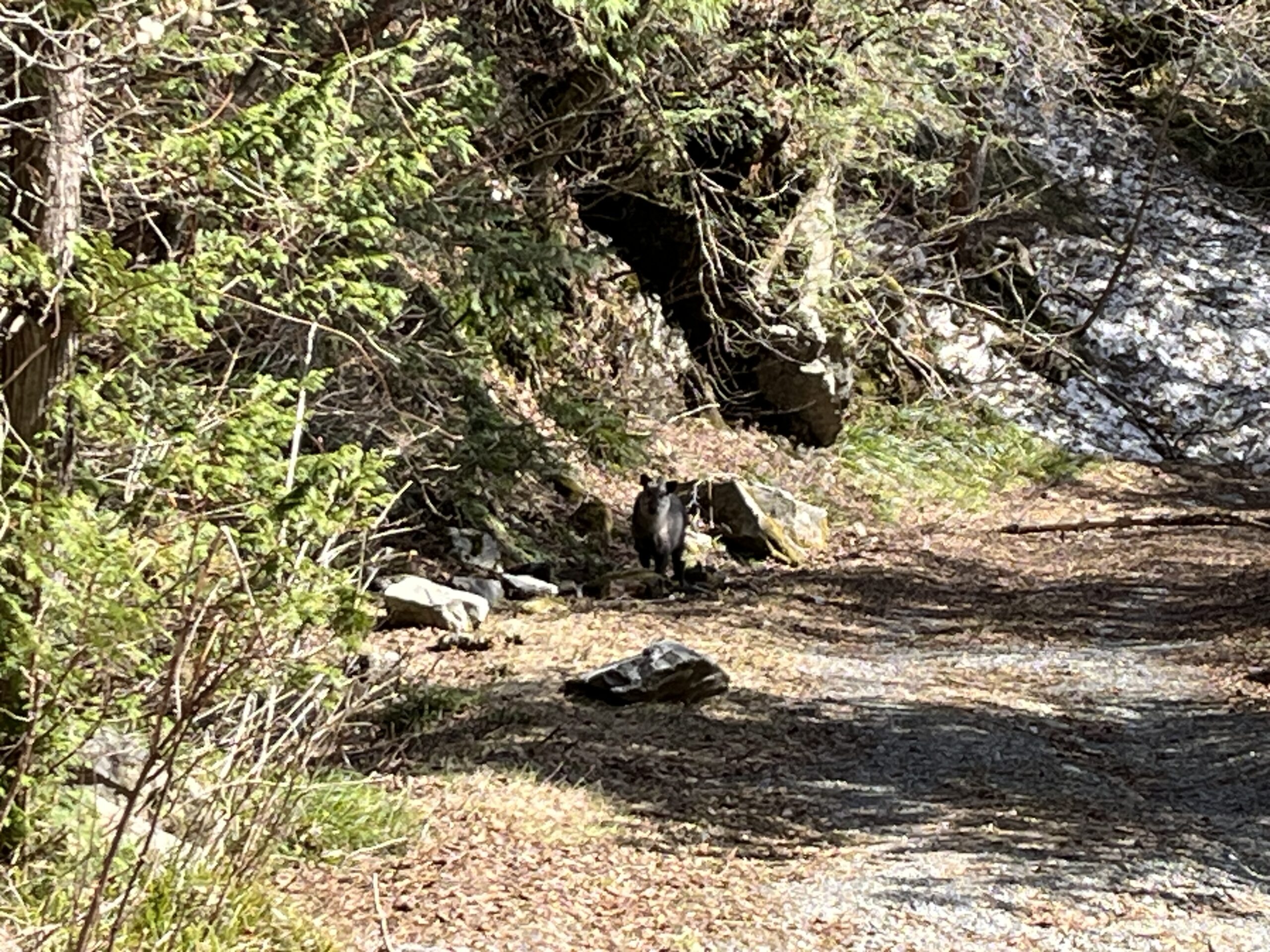 釣りを終えて林道を下っていると、カーブの先に突然現れる黒い影…!