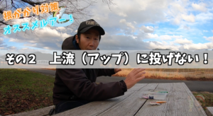 さかなの狙い方としては、どちらにも投げますが、上流に投げると仮に