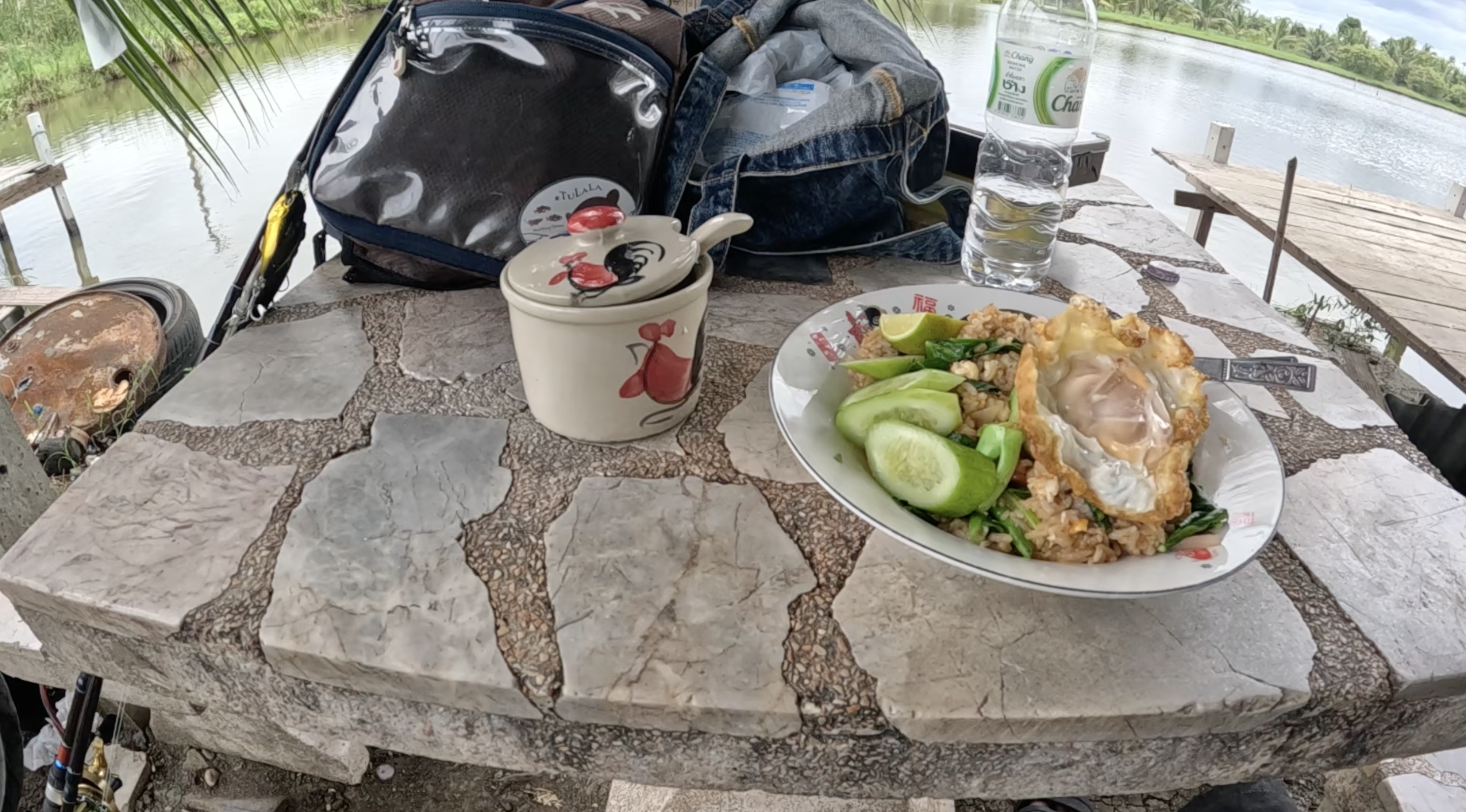池を見ながらのタイ飯は最高です!