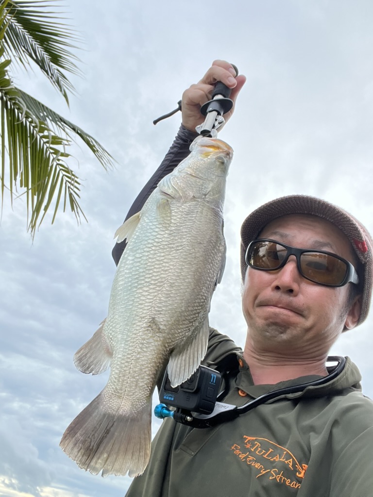 タイを補充したおかげか、午後開始後にサクッと1kほどのバラマンディが釣れました。