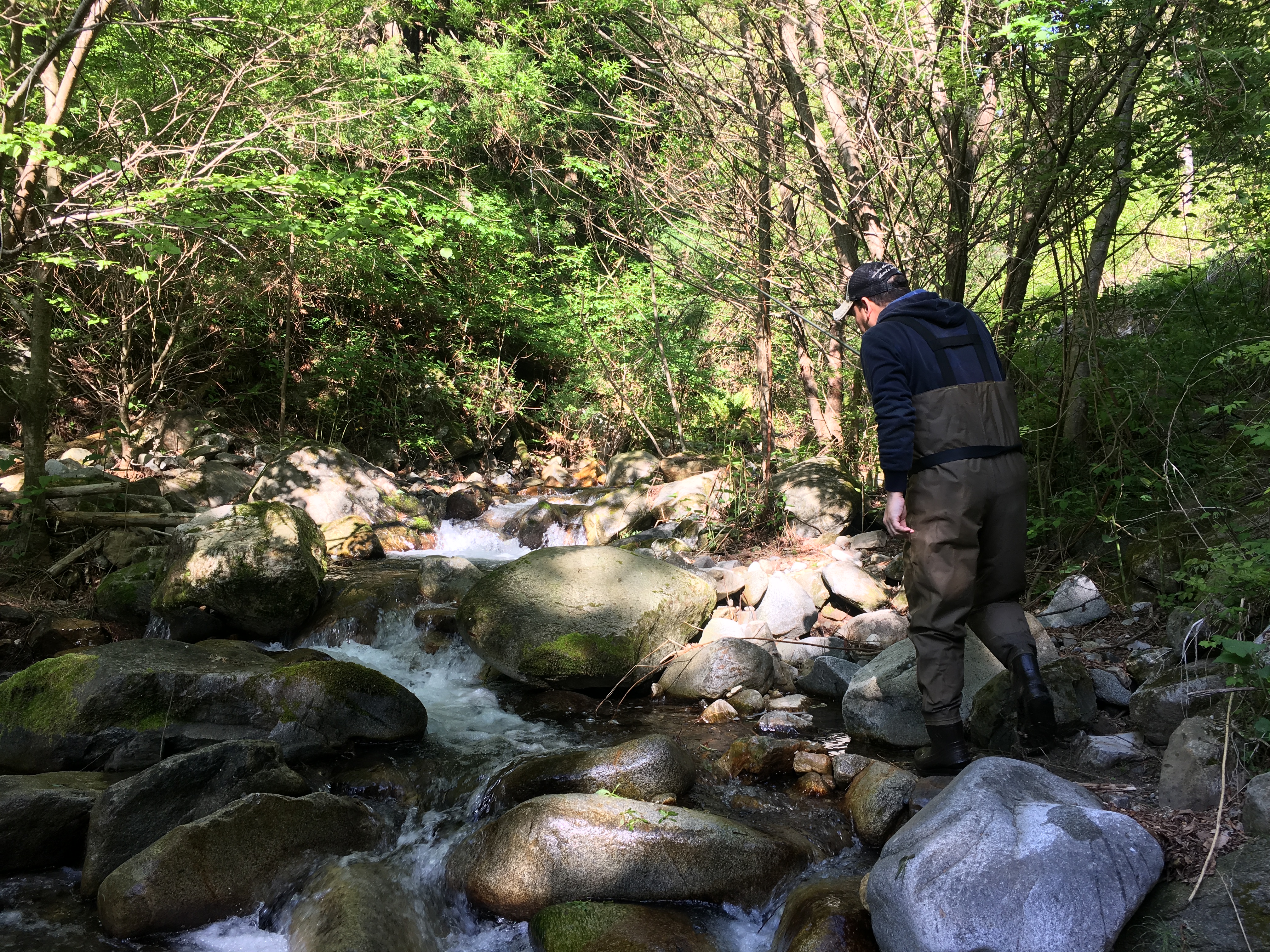渓流は山と川の両方を歩くので足場が悪くとても歩きにくいです。
