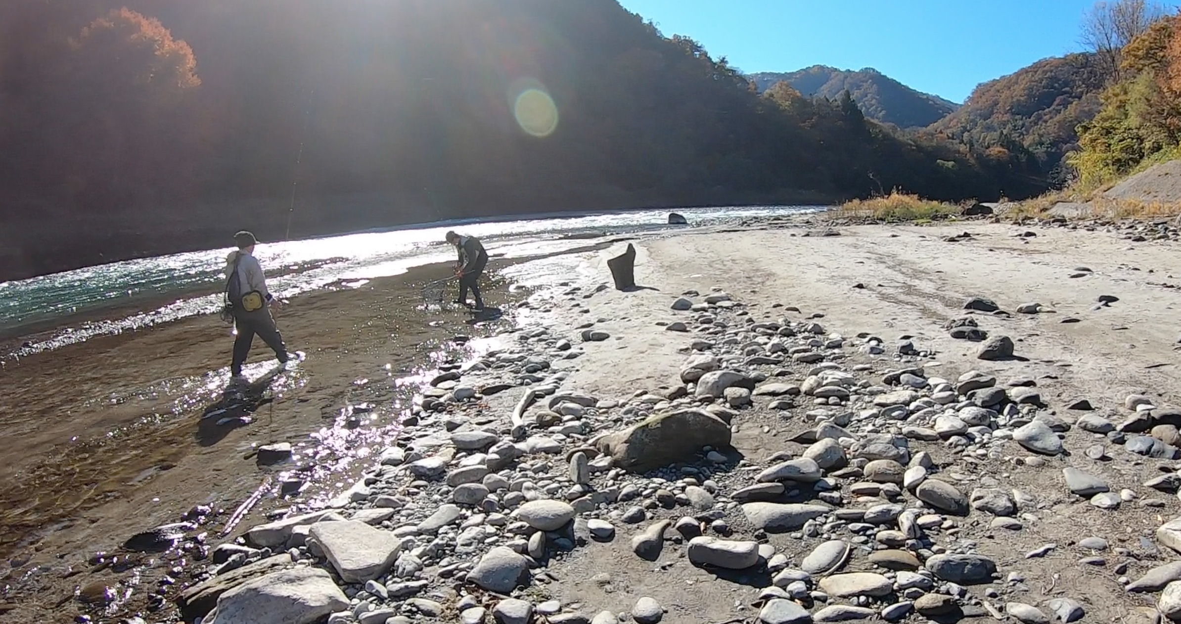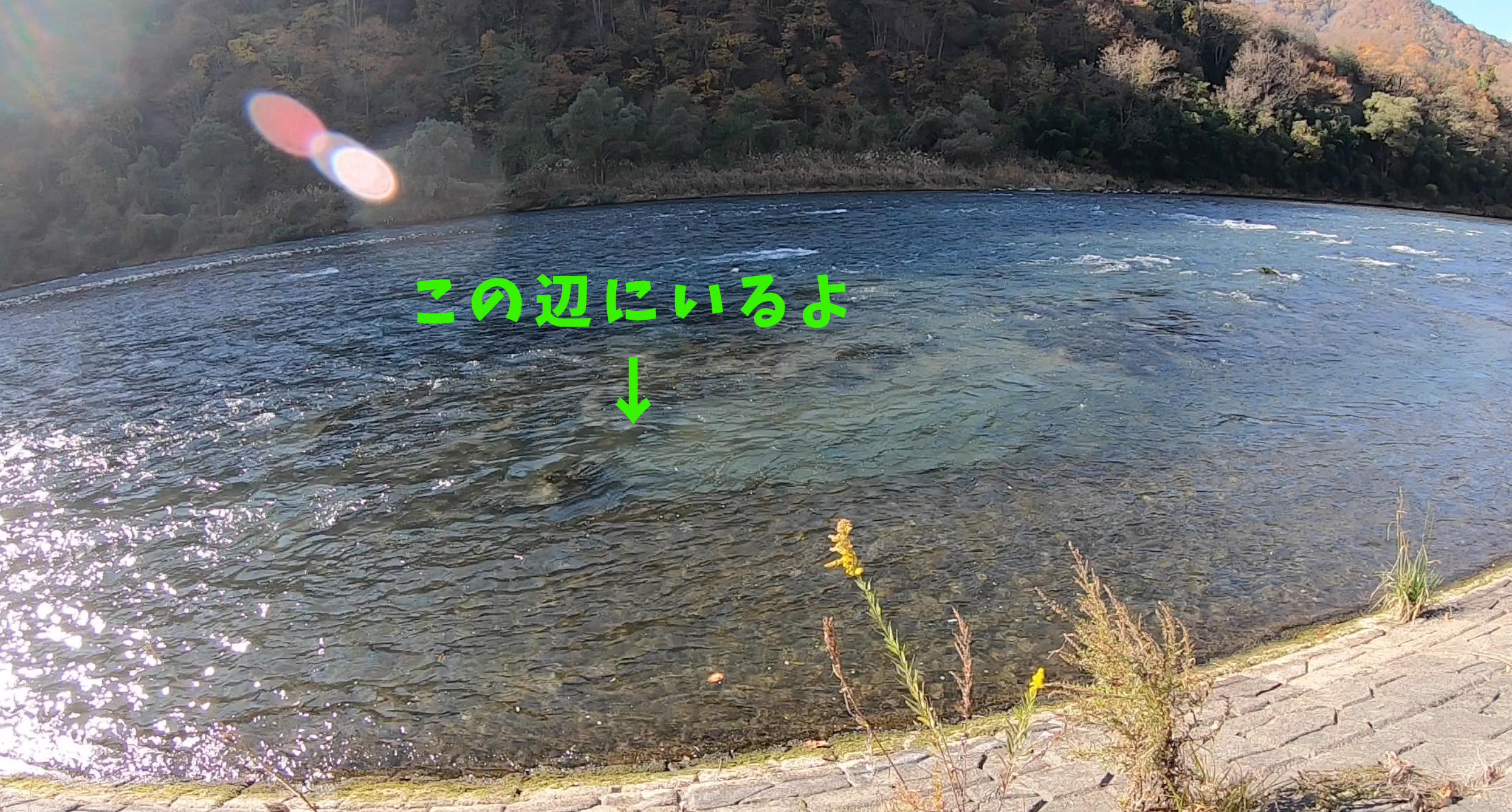 人が多く色々回ってたどり着いた場所ははやや下流のポイント。