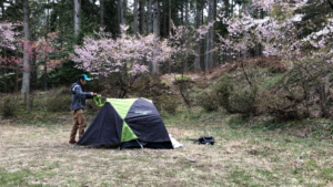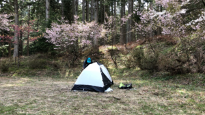 最近流行のソロキャンプ。