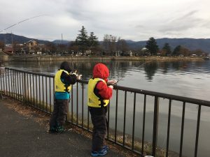 子供たちは釣れないと言いながらも夢中で釣りをしてました。