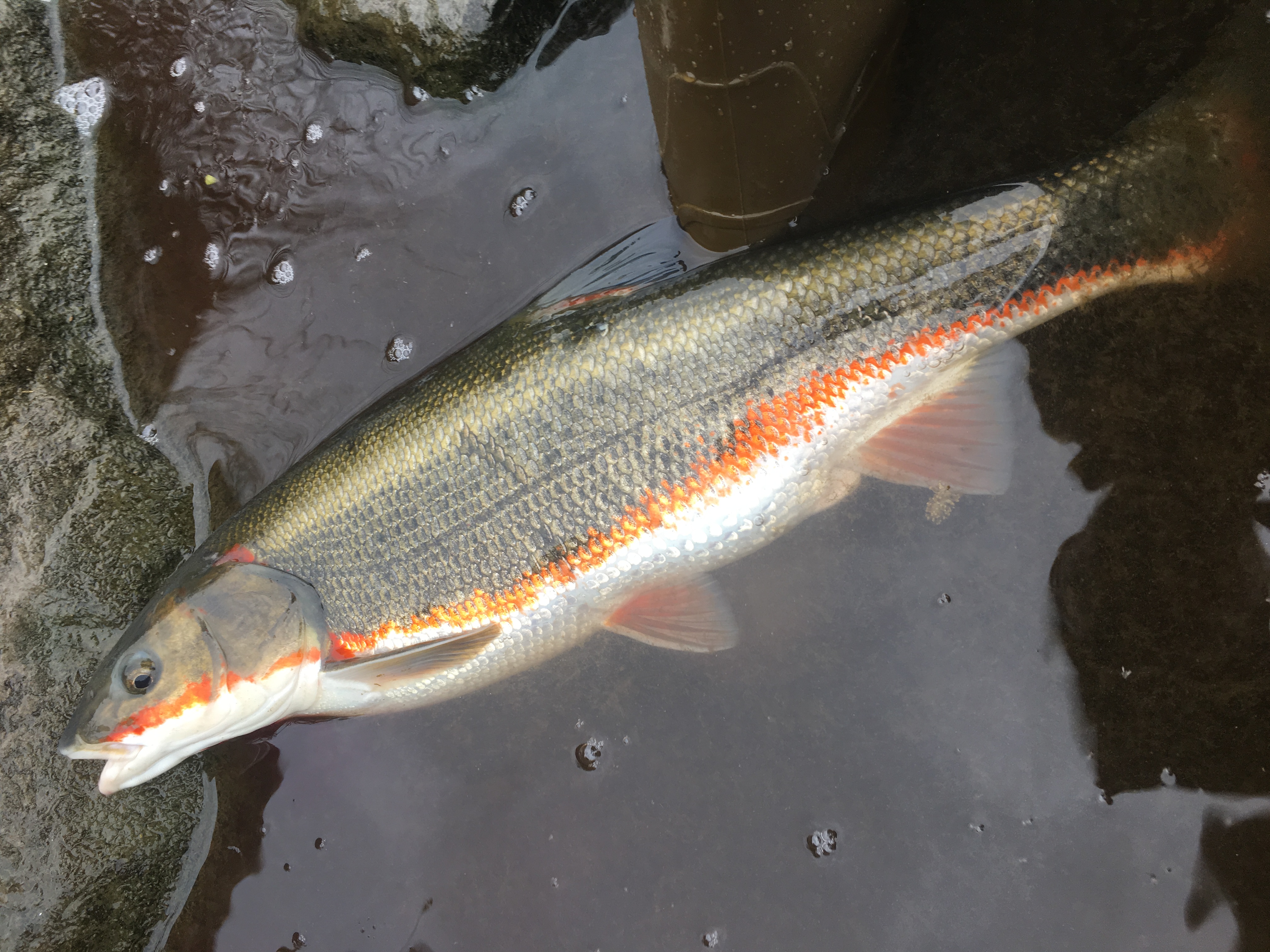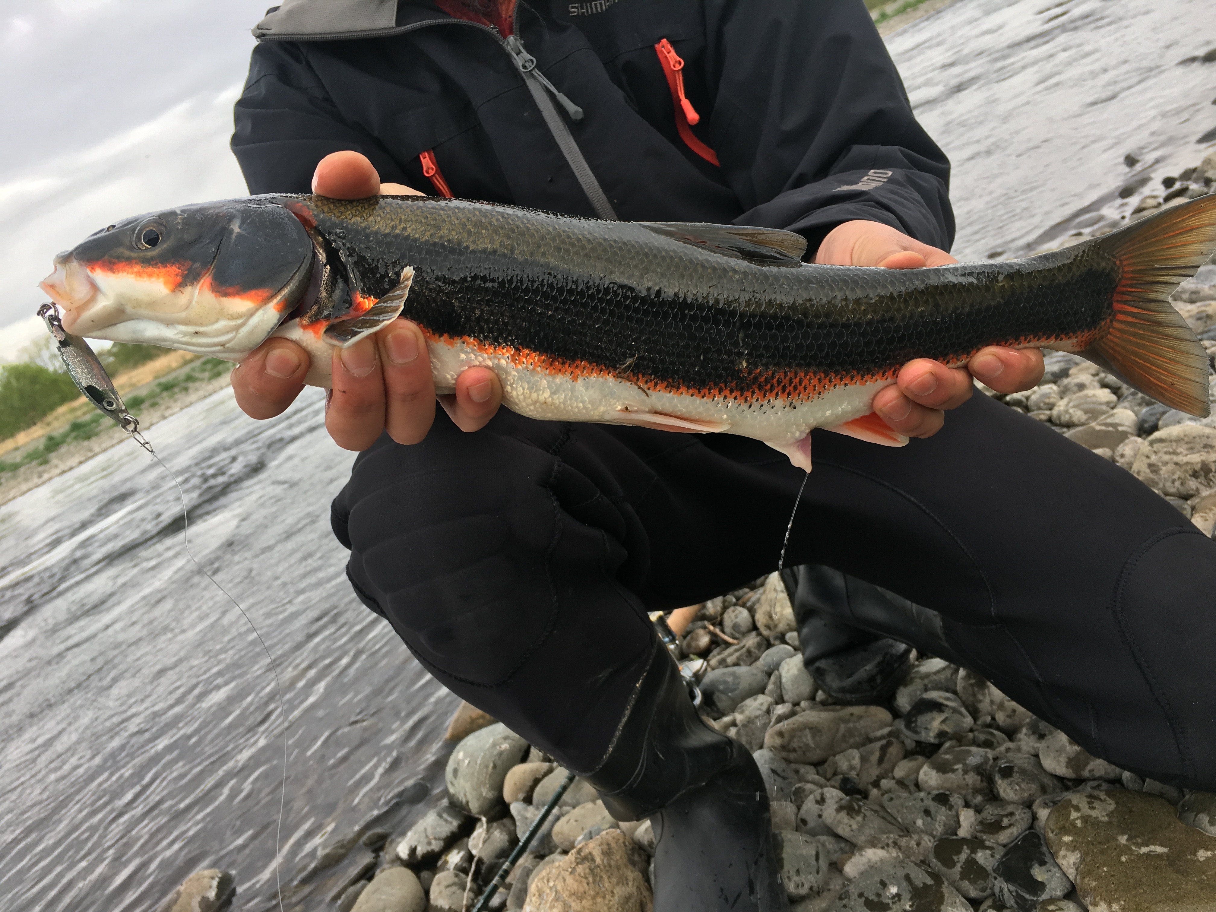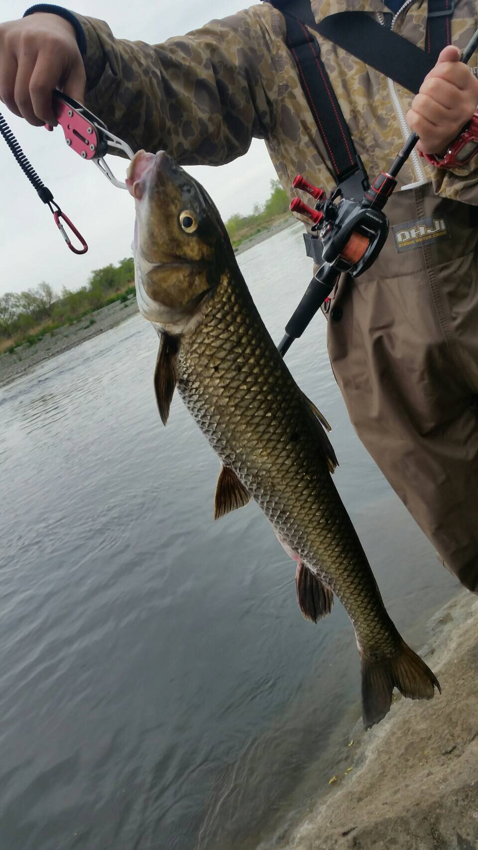 鯉に混じって瀬でバシャバシャしているので、すぐにわかると思います。