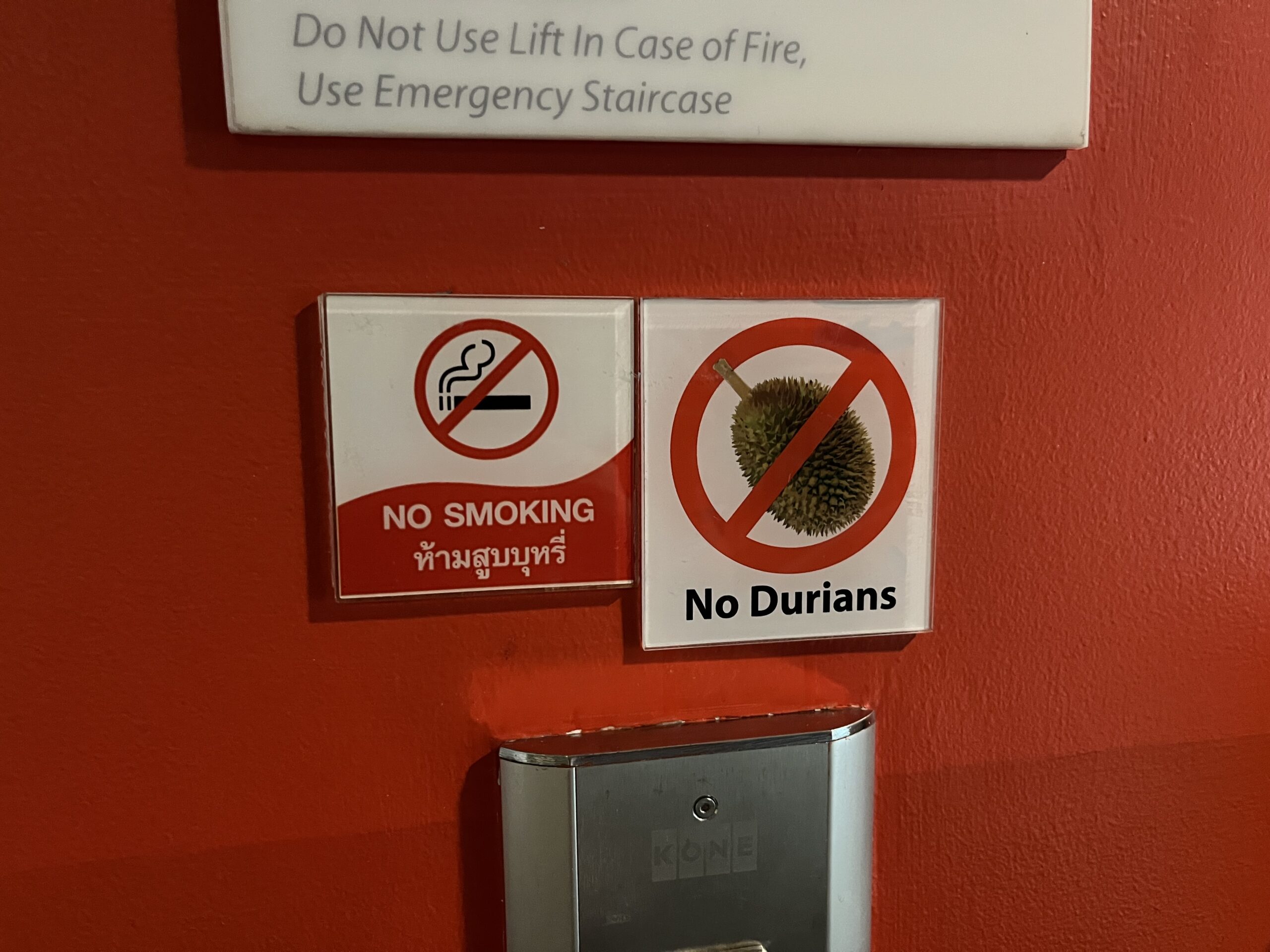 入口に「ドリアン持ち込み禁止」の張り紙。