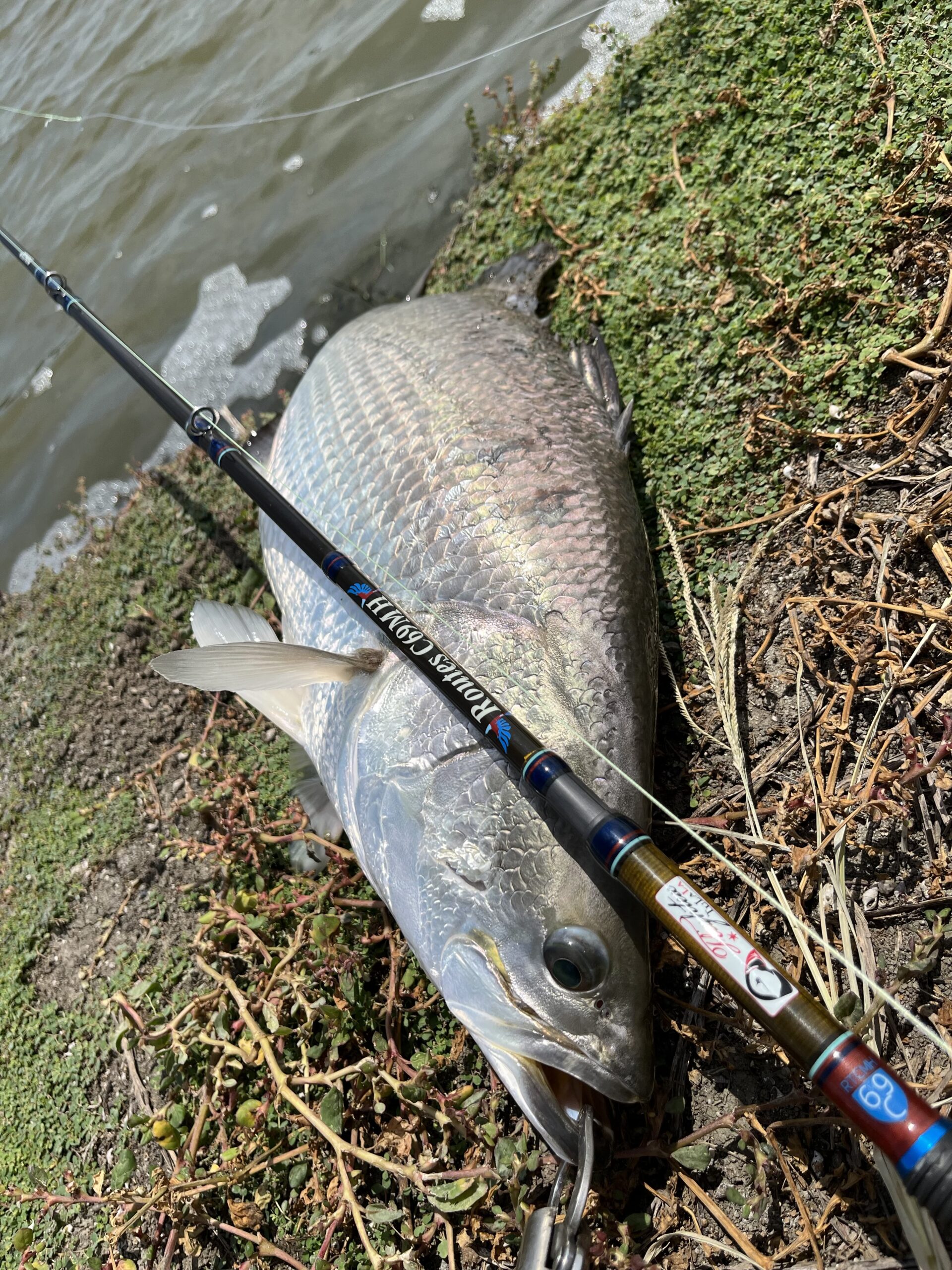 水深は浅めなのでゆっくりスローにボトムを引いてくるとゴツっとアタリました。