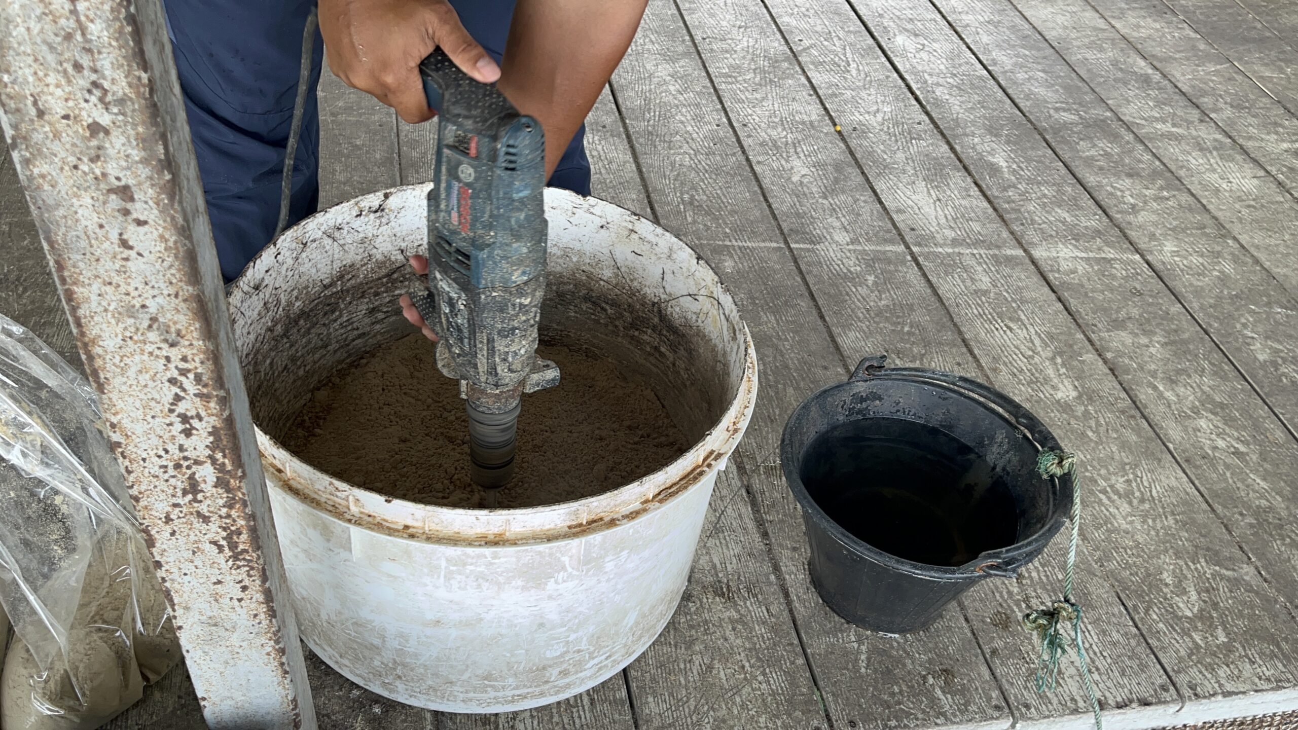 しかも餌を混ぜるのに電動工具を使っていてビックリ!
