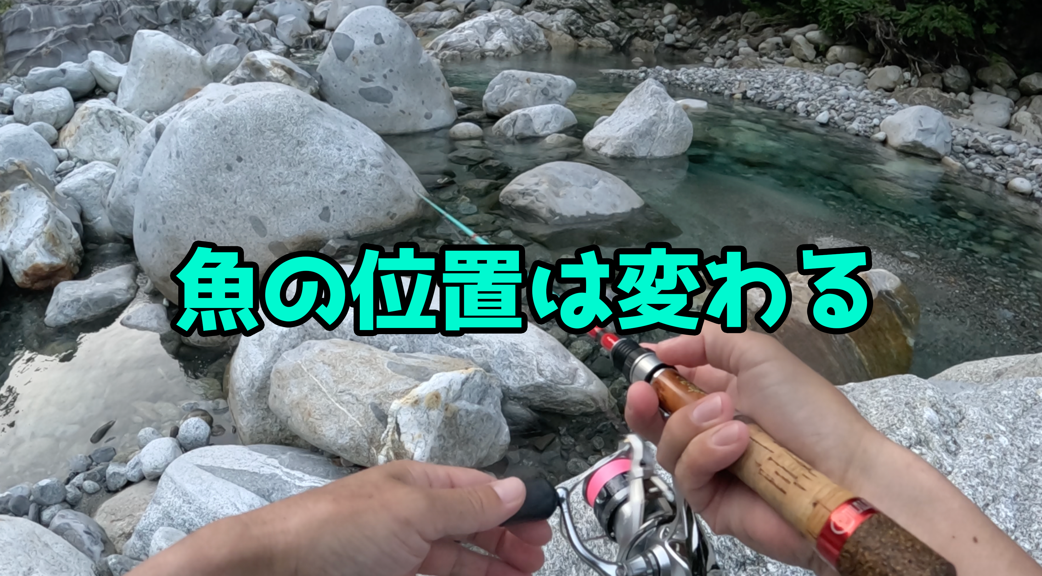 そのためにはルアーをどこに落とすか、川の水はどう流れているかをしっかり意識します。
