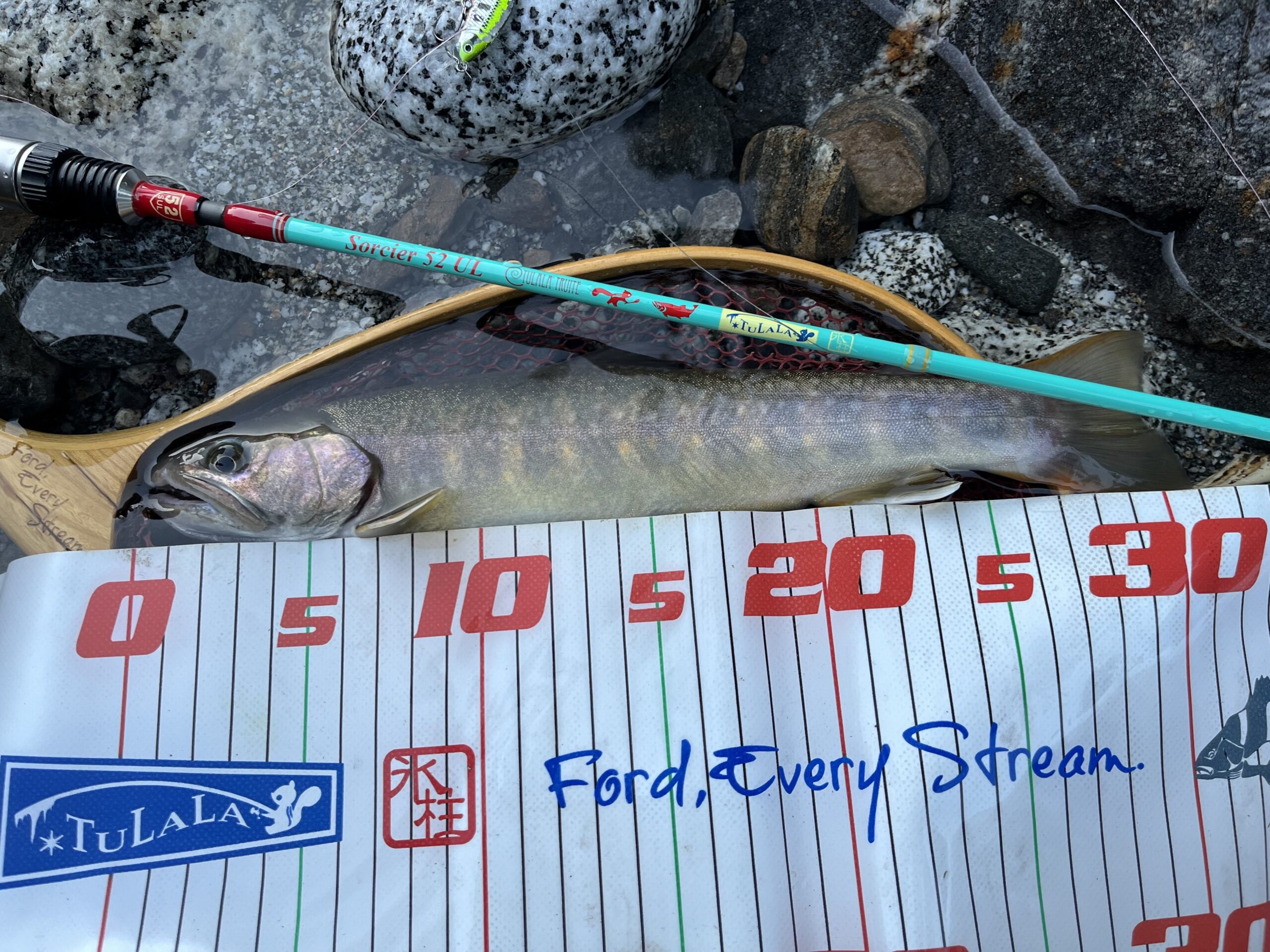 そこで28cmほどのナイスイワナが出て満足しましたが欲張って続けたところシーズンの締めに相応しい尺イワナが相手をしてくれました。