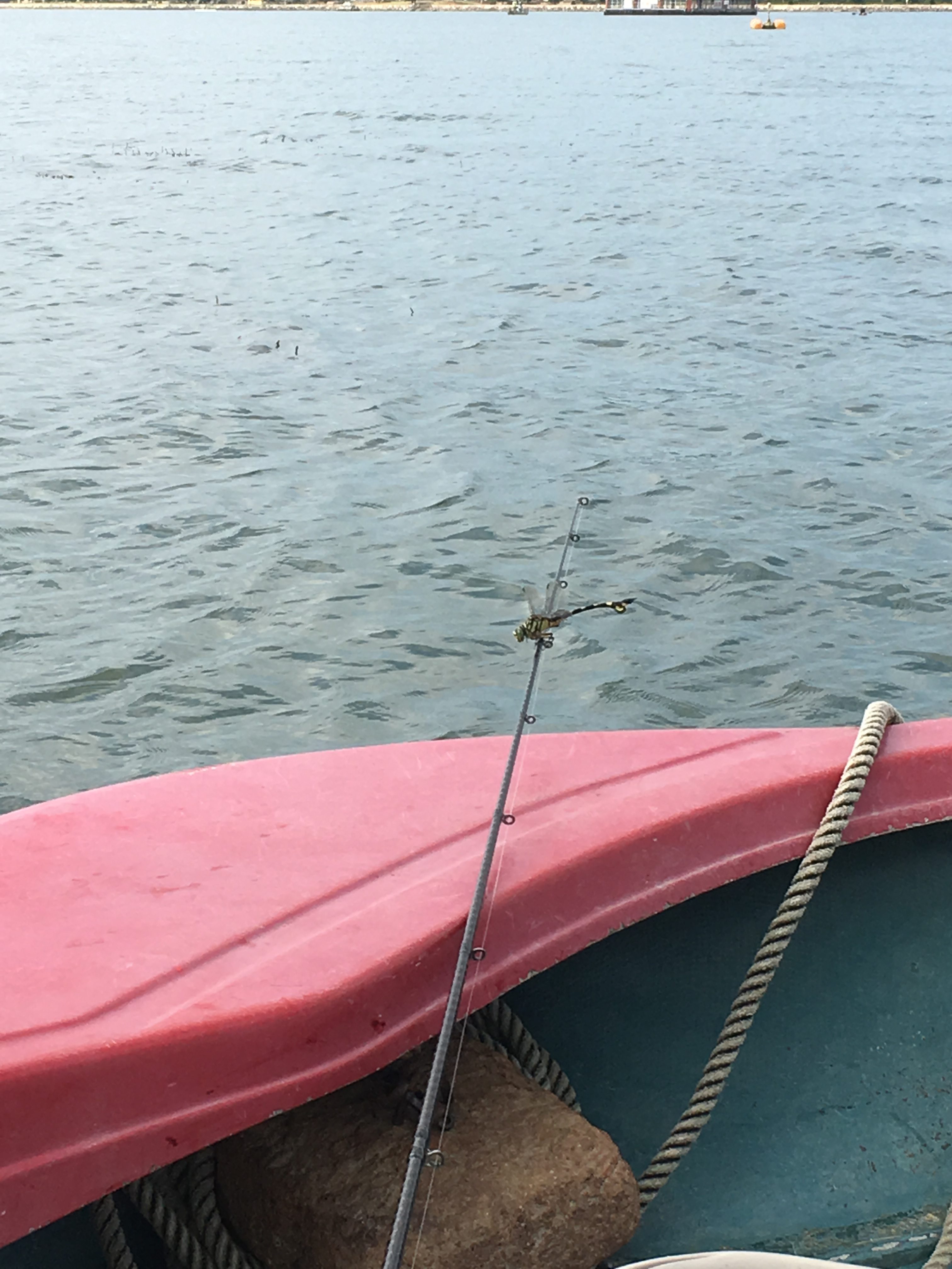 平和を悟ったのか、トンボが竿から動きません・・・