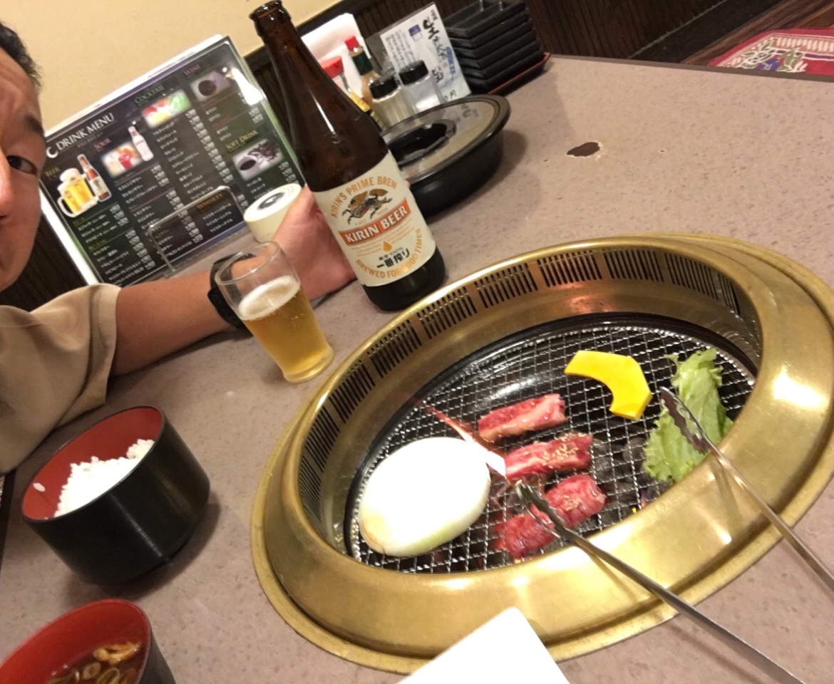 スタミナアップにと焼肉しましたが、一人焼肉は寂しい(笑)