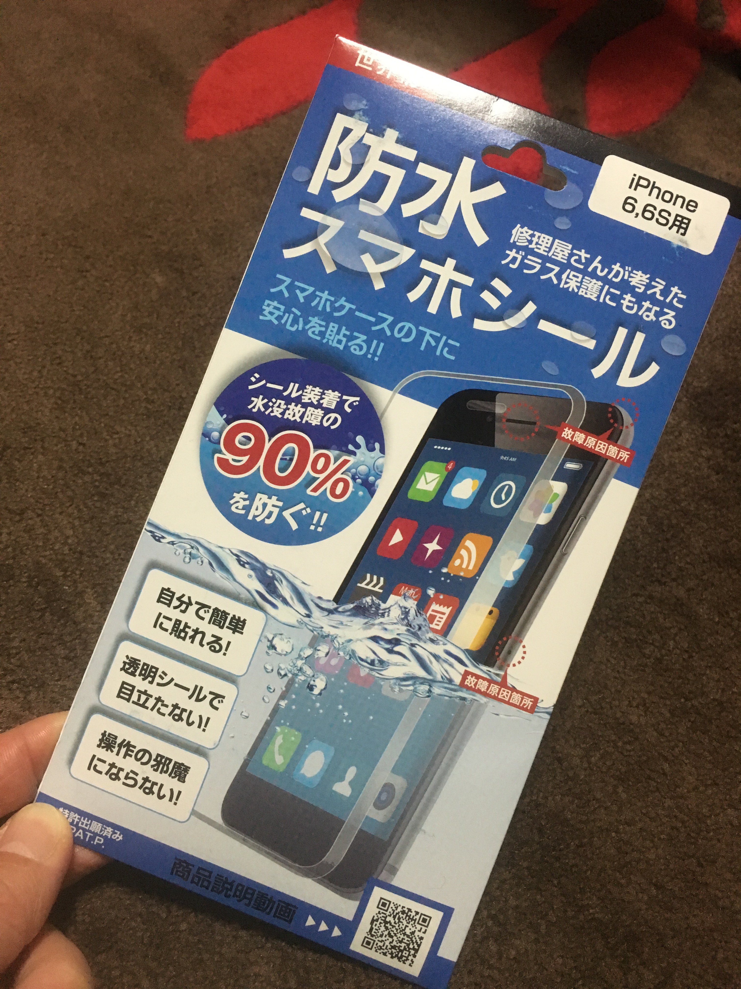 展示品はiPhoneに実際に貼って5cmほどの水中に沈めてありましたが1時間経過しても普通に動いてました Σ( ̄。 ̄ノ)ノ